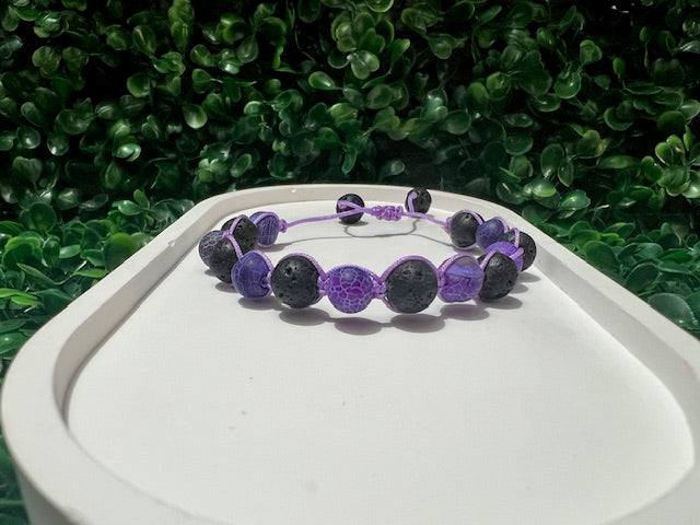 Lava & Purple Agate Stone Bracelet | Aromatherapy Essential Oil Diffuser Bracelet | Handmade Adjustable Jewelry